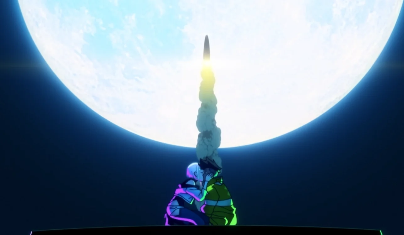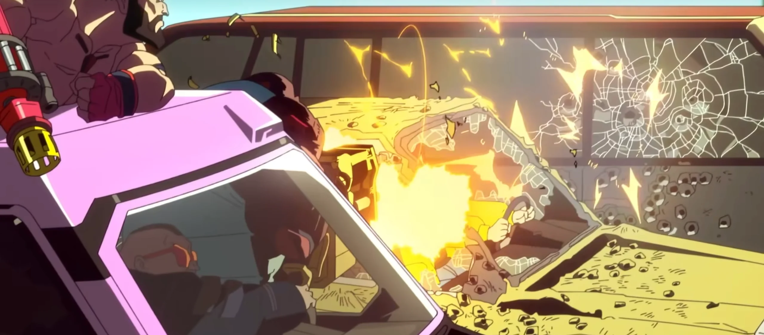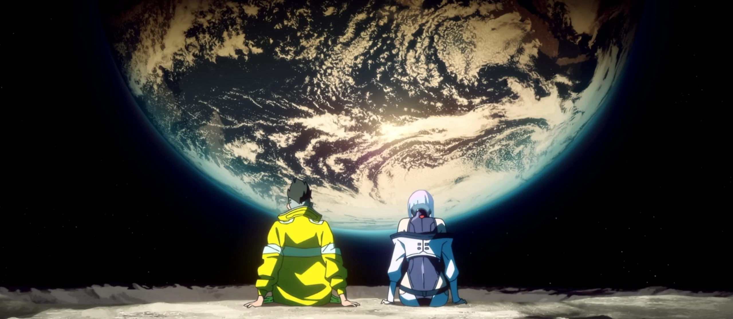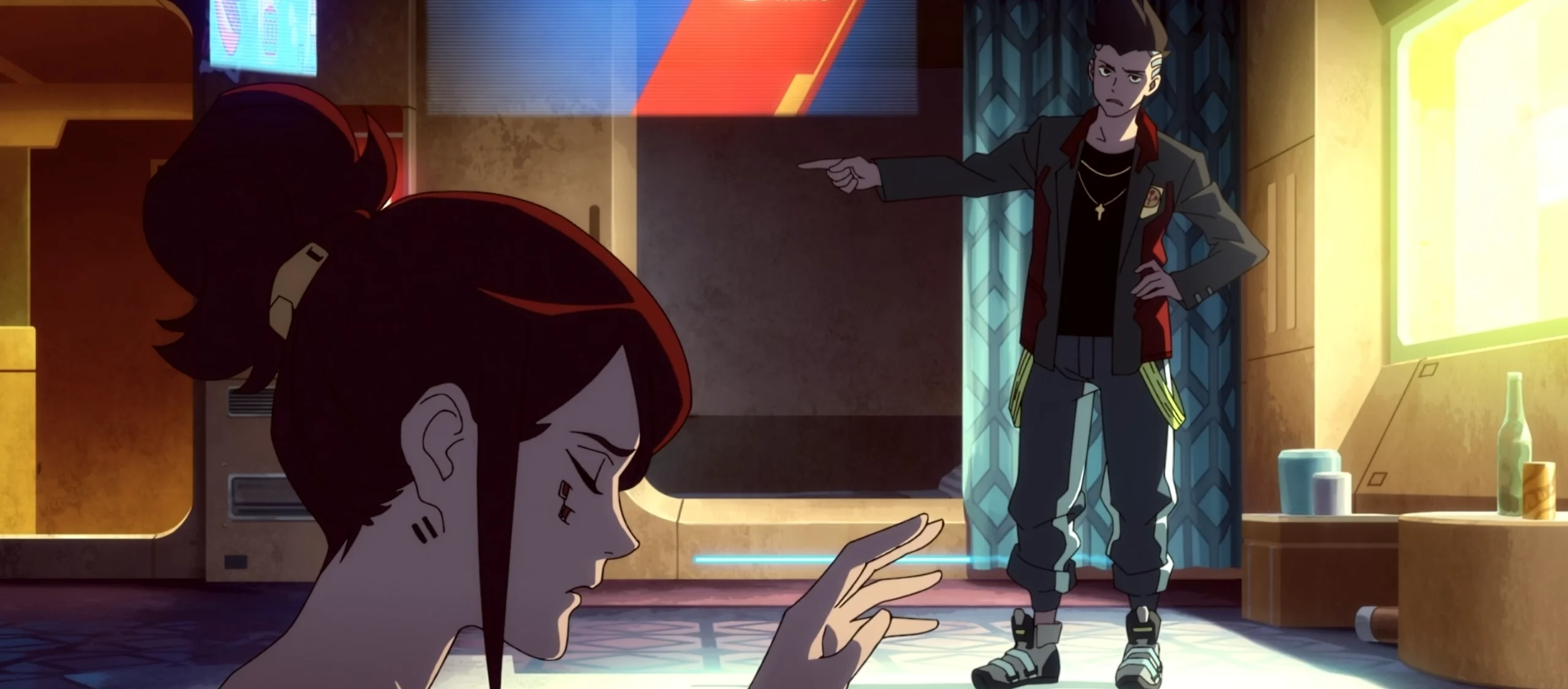 大卫有着很强的行动力吗,时刻告诉自己一定要去做什么,也确实是个不知疲倦从未停下的人,但是从始至终都在被别人赋予动机,别人的梦想驱动,他穿上那件黄马甲就变成了母亲,在衣服刻上了Logo就变成了边缘行者装上了曼恩的手臂就变成了曼恩,装上了义体金刚就变成了疯狂,更不用说从始至终和露西一起登月的梦想,在赛博朋克这个世界大染缸里面,被染上了一层又一层后,最终融化在了这个城市的无垠的夜里,这个特质成为了大卫今后的所有行为的底层代码或者逻辑,再用斯安维斯坦把侮辱母亲的权贵同学胖揍了一顿后,悲伤化为的愤怒已经燃烧殆尽,然后呢?大卫心想?然后那道白月光不偏不倚的照进了大卫的生命中。