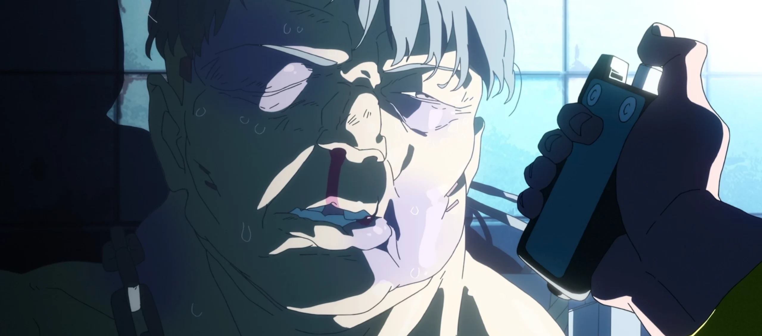 日子本就可以这样得过且过,但是这样的话就不是一个赛博朋克的故事了,于是在后面他们在车里开车在路上不幸卷入了帮派火并,母亲很不巧的身受重伤,付不起昂贵医保的他们很不巧的被来路不明的黑医截胡,而这次也很不巧的成为了大卫见到母亲的最后一面,扒死者义体兜售的人在她的末路也落得被黑医掏空,这也许是现实留给看客们的一点黑色幽默,但对于大卫来说,该怎么接住这突然砸在他身上的现实呢?